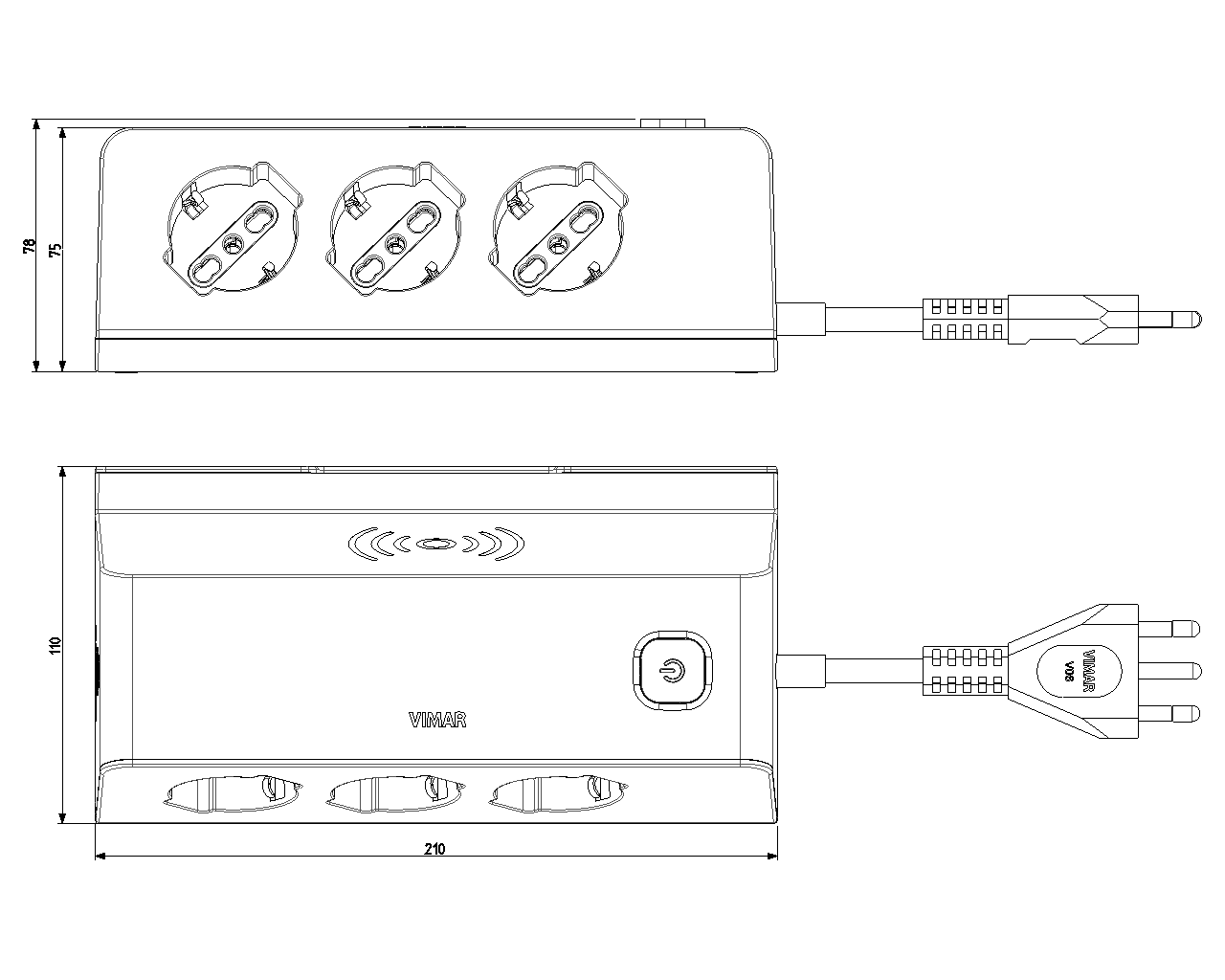 - Prese universali con inclinazioni a 45° per ottimizzare l'utilizzo con diversi dispositivi e Spina orientabile per utilizzo anche salvaspazio
