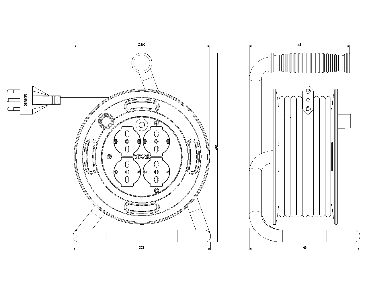 - Potenza massima prelevabile con cavo completamente avvolto 1200 W 230 V~, con cavo completamente svolto 2000 W 230 V~